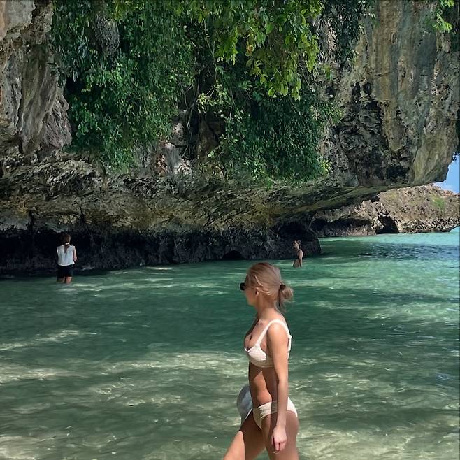 공개된 사진 속 효연은 푸른 바다를 배경으로 부드러운 크림 톤의 비키니를 입고 자유로운 분위기를 연출했다.