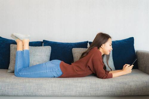 소파나 침대에 엎드려