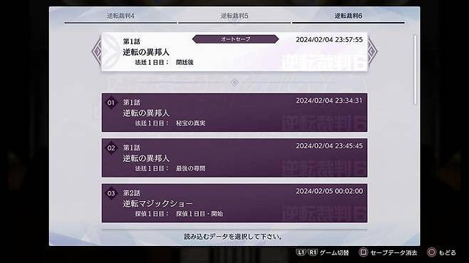 특히, ‘역전재판123’과 비교해 ‘역전재판456’의 큰 장점이라 한다면 한국어, 일본어 등 다양한 언어 버전으로 바꿔서 즐길 수 있는 것에 더해 기존 언어 버전 세이브 파일이 다른 언어로 즐길 때 그대로 사용 가능하게 됐다는 점일 것입니다. 예를 들어 어학 공부를 위해서나, 원작의 뉘앙스를 변경 없이 즐기고 싶어서 일본어 버전으로 하고 싶어졌을 때 기존에 한국어 버전의 세이브 파일이 완벽하게 호환된다는 건 정말 너무나 편한 일일 겁니다(기존 ‘역전재판123’에서는 처음부터 다시 했어야 했죠).