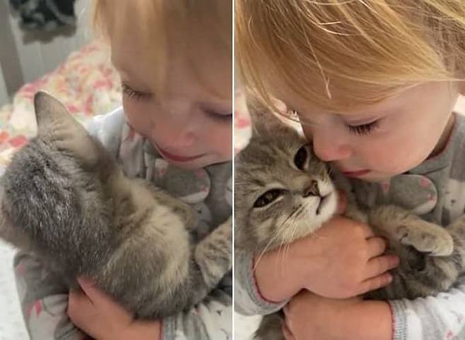 얼마나 좋았는지 아기 집사는 새끼 고양이를 품에 와락 안고서 얼굴을 비비는 등 애정 표현을 했다고 하는데요. 정말 감동적이지 않습니까.