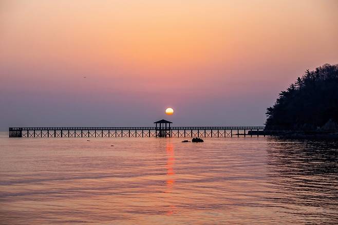 섬 안쪽으로 이동하면 사색의 숲을 지나 자리한 아담한 사찰 용궁사가 조용한 분위기를 전한다.