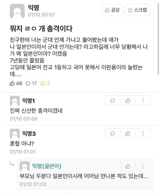 고등학교 때 별명이 이완용이였던 친구의 비밀