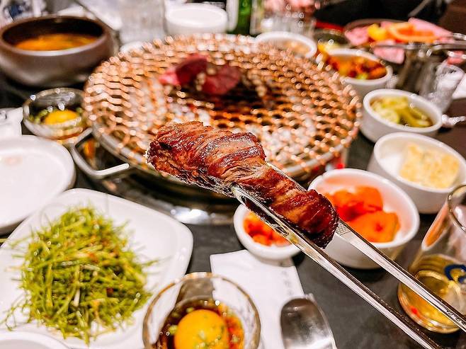 ▲메뉴: 와인절인 소갈비살 27,000원, 항정살소금구이 20,000원