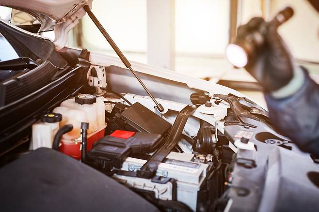 배터리는 모터를 비롯한 자동차 부품들에 전력을 공급합니다. 보통 3년 주기로 교환을 하며 수시로 점검하여 배터리에 먼지나 오염물이 쌓였을 경우 잘 청소하여 관리하도록 합니다.