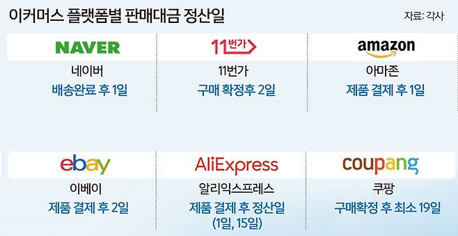 아마존, 이베이, 알리익스프레스 등 글로벌 기업들 사이에서도 판매자의 성장을 돕는 빠른 정산이 대세다. 중간유통업자인 이커머스 기업들로서는 재무 건전성과 판매력을 동시에 갖춘 판매자들을 확보해야 하기 때문에 빠른 정산이 선택이 아닌 필수로 자리 잡고 있다는 해석이 나온다.