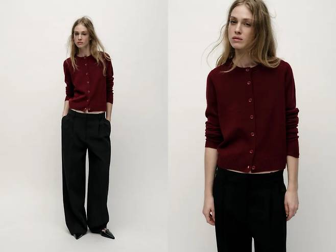 프릴 디테일이 부담스럽다면 ‘100% 울 베이직 재킷’은 어떨까. 100% 울로 제작되어 부드러운 촉감과 뛰어난 보온성을 자랑한다. 무엇보다도 실용적인 디자인으로 계절에 구애받지 않고 활용할 수 있어 활용도가 높다. 라운드넥과 긴소매 디자인은 클래식하면서도 단정한 느낌을 주며 심플한 실루엣 덕분에 다양한 스타일링이 가능하다.