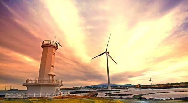 푸른 에메랄드빛 바다와 하얀 풍차와 맑은 하늘이 만나 하나의 그림을 연출해주고 있어 드라이브하는 내내 마음이 정화되는 느낌을 받을 수 있습니다.