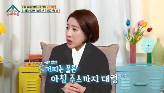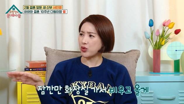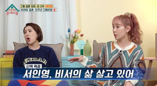 별은 "인영이가 거의 비서의 삶을 살고 있다"고 폭로했고, 서인영은 "아침에 커피, 아침 주스 배달부터 엄청 하고 있다. 샤워가 끝나면 속옷과 옷을 준비한다"고 밝혔다.