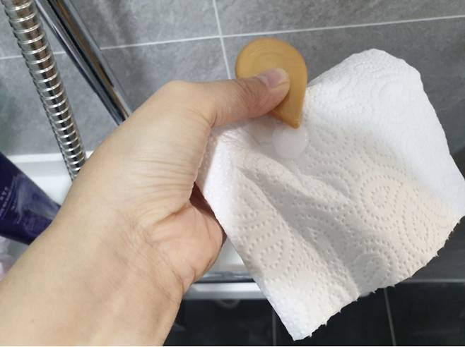 또 양칫물이 잘 튀는 욕실 거울도 린스로 닦아보세요