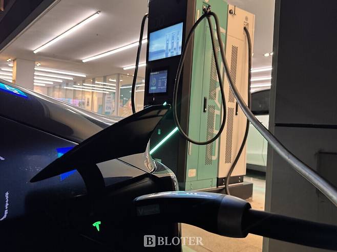 새로 설치된 충전기는 NACS·DC콤보 커넥터를 함께 쓸 수 있는 양팔형 구조다. 다만 NACS 사용 시 DC콤보 커넥터를 동시에 쓸 수는 없다.