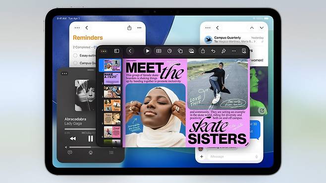 가장 큰 변화는 아이패드에 제대로 된 창을 지원합니다. 여러 개의 창을 띄워서 자유롭게 배치할 수 있고, 심지어 창의 가장자리에는 맥처럼 창을 제어할 수 있는 일명 ‘신호등’ 버튼들이 생겼어요. 창들을 왼쪽이나 오른쪽으로 보내서 자동으로 위치를 맞추게 할 수도 있고, 역시 맥처럼 열린 창을 한 번에 볼 수 있는 익스포제도 지원해요. 마우스나 트랙패드를 연결하면 더 정확한 마우스 커서가 생겼고, 위에는 메뉴 바도 생겨서 맥처럼 앱의 세부 기능에 쉽게 접근할 수 있어요.