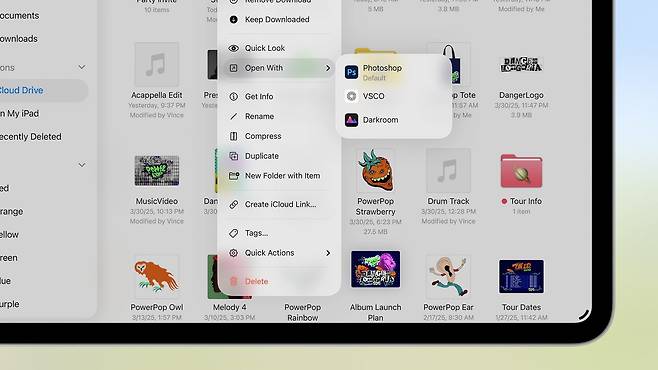 파일 앱에서는 특정 포맷의 파일을 기본으로 열 써드파티 앱을 지정할 수 있고, 이미지나 PDF를 볼 수 있는 미리보기 앱도 맥에서 가져왔어요. 또한 백그라운드 작업 관리도 개선되어 파이널 컷 프로에서 편집한 영상을 내보내는 것과 같은 연산 집약적인 작업을 백그라운드에서 처리할 수 있게 됐습니다. 팟캐스트 녹음과 같은 작업에 용이하도록 녹음 소스를 지정할 수 있게 되었으며, 에어팟 프로 2와 에어팟 4에 한해 마이크 알고리즘을 더욱 개선하여 스튜디오 레벨의 녹음 및 통화 음질을 제공할 예정이라고 해요.
