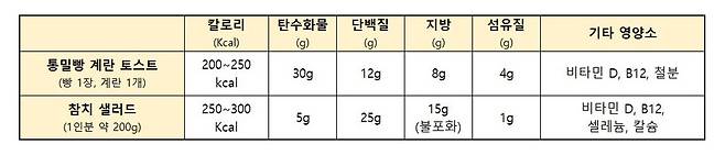 빵, 계란, 버터. 이 세 가지로 우선 주요 3대 단백질은 모두 챙길 수 있다. 일반 식빵 대신 통밀빵을 선택해 섬유질 섭취량을 늘릴 수 있도록 했다. 한 가지 마음에 걸리는 것이 버터다. 토스트의 맛을 내는 데는 최적의 선택이겠지만, 포화지방 함량이 높기 때문에 섭취량은 적은 편이 좋다. 건강을 위해 올리브유 또는 코코넛 오일을 사용하는 것을 고려해보자.