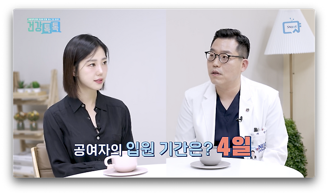 수혜자의 경우, 생체 이식은 바로 회복이 잘 되기 때문에 10일 내외입니다.
