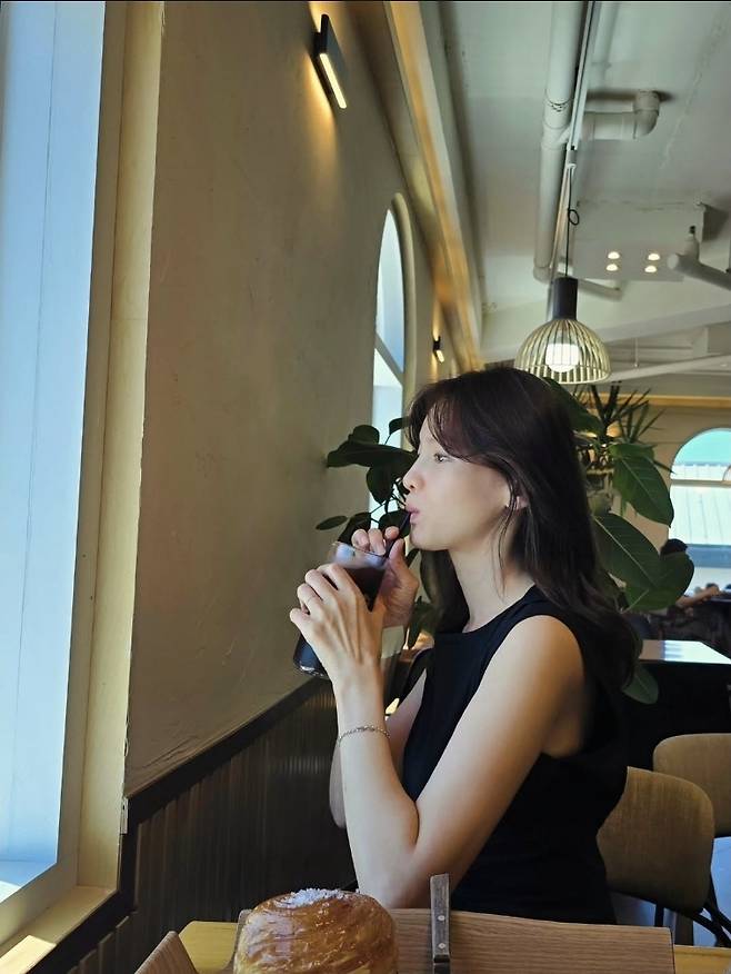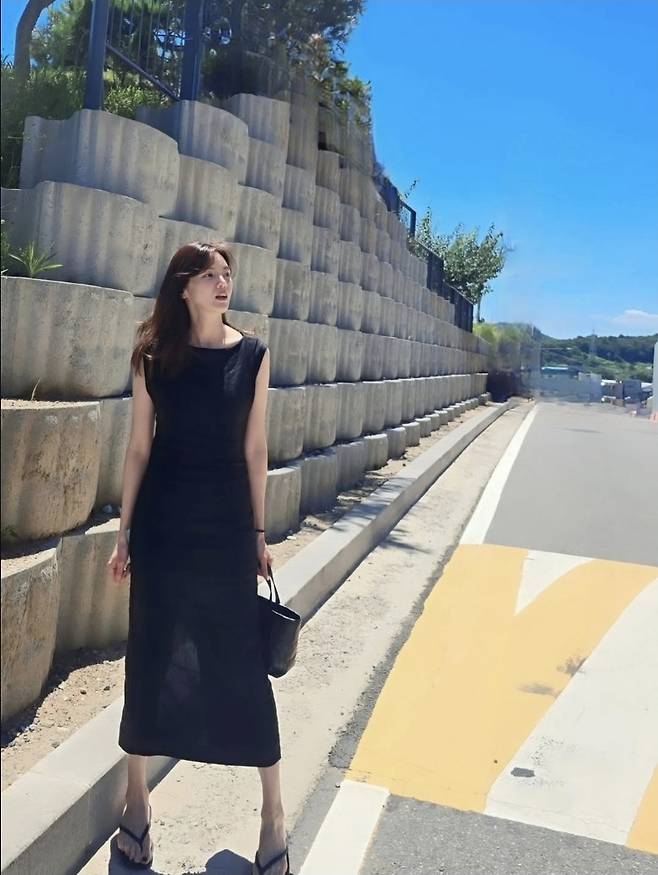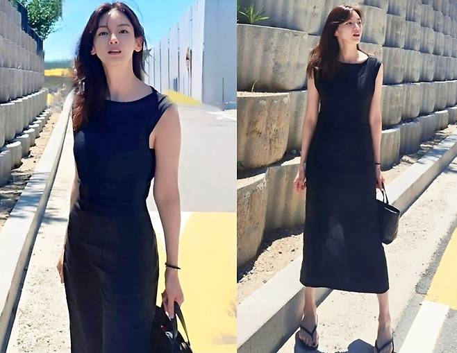 배우 정가은이 올블랙 슬리브리스 원피스룩으로 시크한 여름 패션을 선보였습니다.
