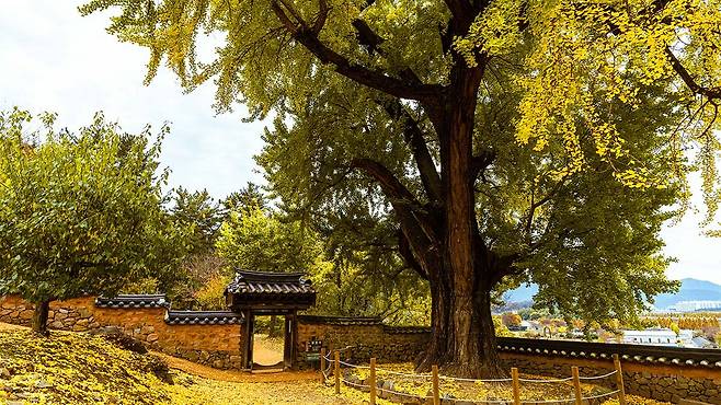 이광진 선생이 직접 심었다고 전해지는 이 나무는 여름엔 짙은 녹음을 드리우고, 가을이면 폭포처럼 은행잎을 쏟아내며 장관을 만든다.
