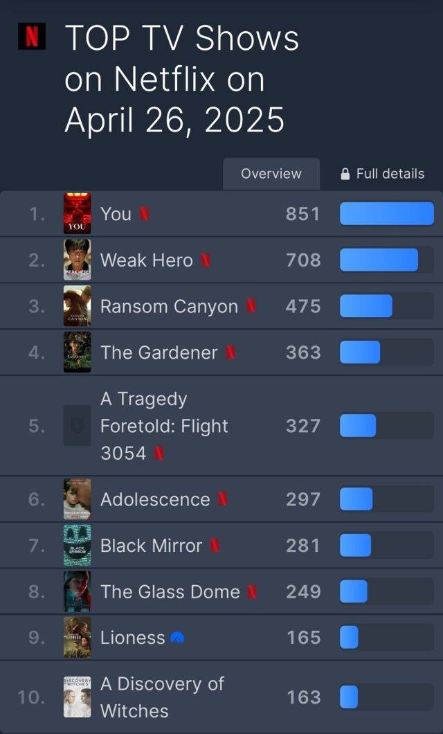 그뿐만 아니라 넷플릭스가 서비스되는 국가 93개국 중 91개국의 순위권에 진입했으며, '약한영웅 Class 1'이 공개되었을 때는 진입하지 못했던 영국 차트에도 첫 진입을 하는 등 전 세계적으로 눈에 띄는 성과를 내며 돌풍을 일으키고 있다.