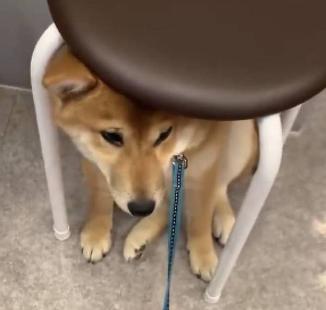 의자 밑에 들어간 시바견 강아지의 표정 또한 누가 봐도 진찰 받기 싫다고 말하는 듯 보였는데요. 과연 녀석은 무사히 진찰을 받을 수 있을까요.