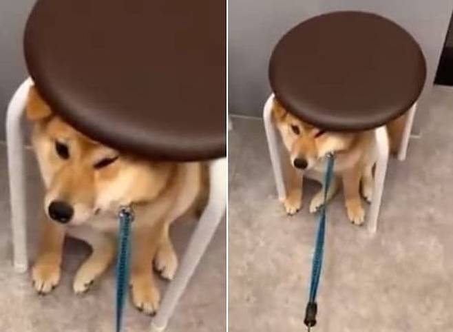 어떻게 해서든 진찰 받기 싫다며 버티는 중인 강아지는 집사가 의자를 치우고 나서야 엉덩이를 뗄 수 있었다고 하네요. 정말 못 말리는 강아지입니다.