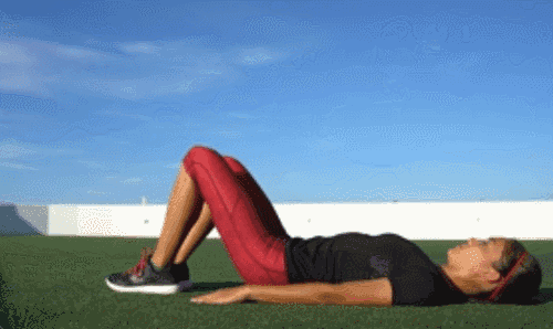 매트에 등을 대고 눕습니다. 상체를 바닥에 고정한 상태에서 두 다리를 들고, 무릎을 구부립니다. 오른쪽 다리를 내리면서 발끝을 바닥에 터치한 후 원래 자세로 돌아옵니다. 왼쪽 다리도 동일하게 내렸다가 돌아옵니다.