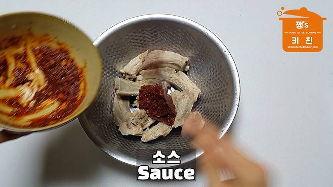 고춧가루 5T, 진간장 3T, 맛술 2T,