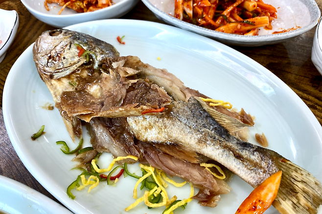 내가 다닐 때는 솥밥이 아닌 녹차말이밥이었는데 지금은 녹차숱밥으로 바뀌었다. 그래서 아마 밥은 훨씬 더 맛나졌을 듯하다. 여기는 보리굴비를 제대로 내어준다. 아주 딱딱하지도 무르지도 않아서 먹기가 적당한 정도의 보리굴비다. 가격은 센 편으로 23,000원. 찾아가는 위치는 일산이 낯설어서 힘들었지만 도착하니 가게 앞에 넓은 주차장이 있어서 편했던 기억이다.