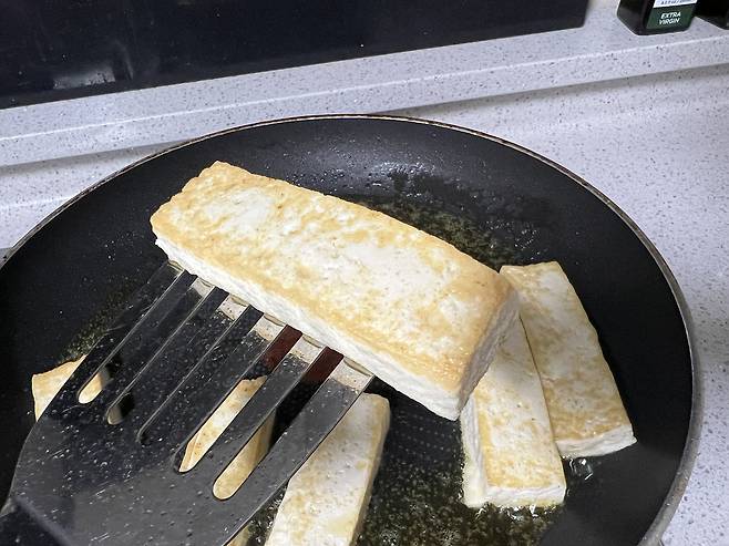 두부는 더 단단해지고 쫄깃쫄깃 맛이 좋아집니다.
