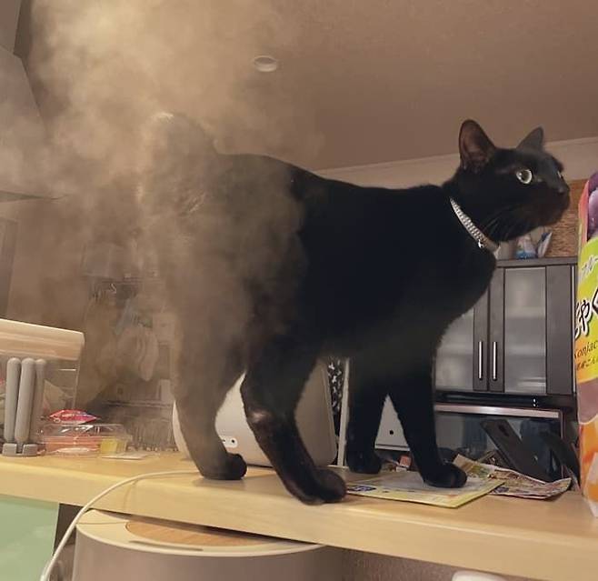 검은 고양이는 가습기를 한참 바라보더니 느릿하게 앞으로 다가가더니, 수증기가 나오는 바로 그 위치에 몸을 들이댄 거예요. 처음엔 그저 호기심인가 했죠. 하지만 녀석은 그 자리에서 미동도 하지 않고, 마치 뭔가 즐기듯이 가습기 앞에 서 있었습니다.