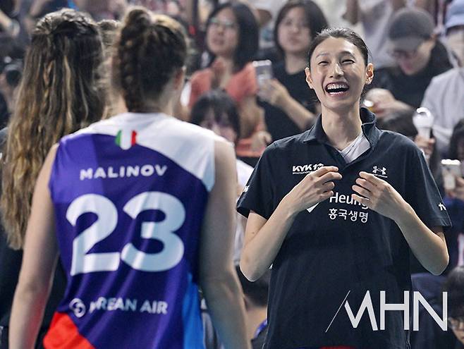 (MHN 삼산, 권수연 기자) "이제 집에 가자아!" 마지막으로 올라선 코트에서 '배구황제' 김연경은 마이크를 잡고 쩌렁쩌렁 외쳤다.