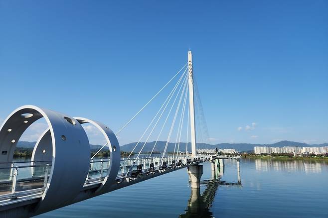 소양강 스카이워크는 춘천의 소양강 위에 설치된 유리 바닥 전망대로, 투명한 바닥을 통해 아찔하게 펼쳐진 강 아래 풍경을 감상할 수 있는 명소입니다.