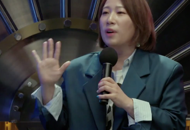 무대 위에서 강렬한 아줌마 캐릭터로