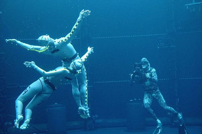 90만 갤런의 물탱크 속에서 이뤄진 수중 퍼포먼스 캡처 촬영을 위해 배우들은 하와이로 떠나 특별 잠수 훈련만 2개월간 받아야 했으며, 오로지 숨 참기만으로 물속에서 최대한 오래 머무르는 와중에도 세심한 감정 연기를 펼쳐 보였다. 특히 케이트 윈슬렛은 물속에서 무려 7분 14초의 시간 동안 숨을 참으며 놀라운 열연을 펼쳐, 촬영 현장에서는 프리다이빙 챔피언이라고 불리기도 했다.