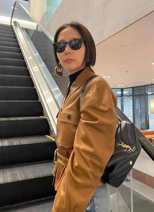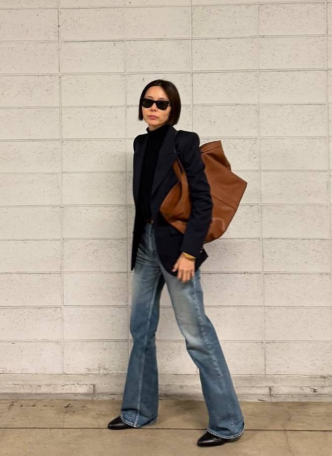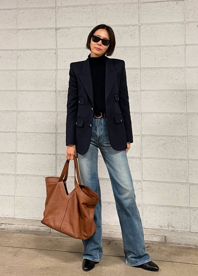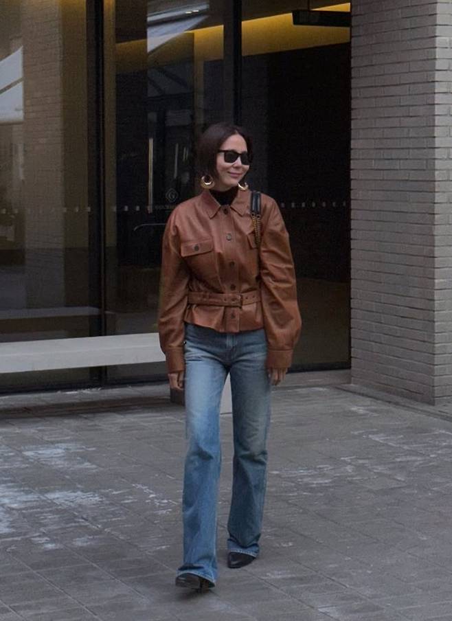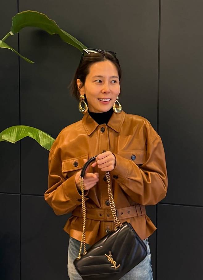 공개한 사진에서 김나영은 카멜 가죽 재킷에 블랙 마이크로백을 매치한 모습과 블랙 블레이저 재킷에 커다른 쇼퍼백을 매치한 모습으로 스타일리시한 외출 데일리룩을 선보였다.