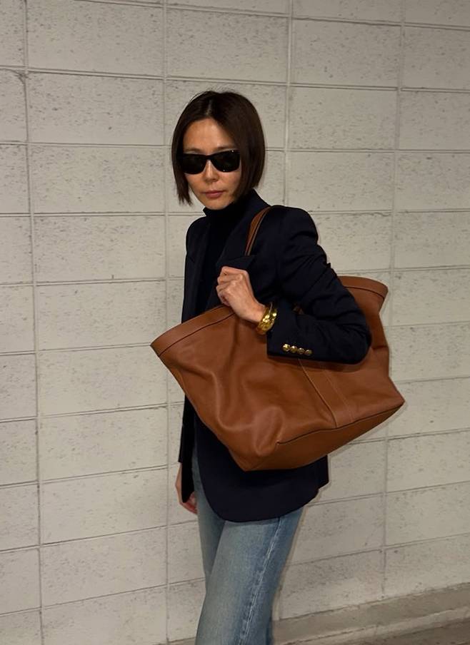방송인 김나영이 마이크로백과 쇼퍼백으로 스타일리시한 데일리룩을 완성했다.