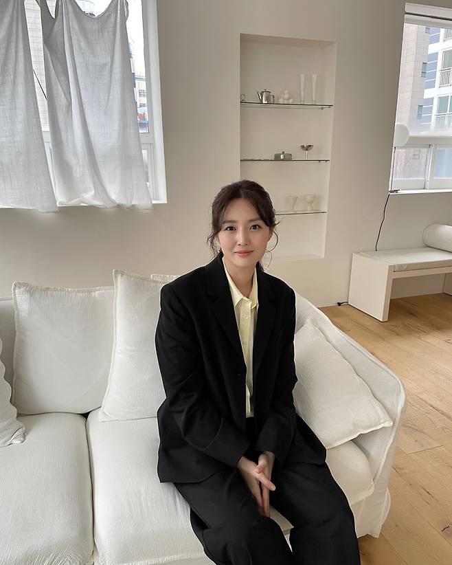 블랙 수트를 착용해 단정하고 세련된 이미지를 강조했다. 안에는 크림색 셔츠를 매치해 블랙의 무게감을 덜어내면서도 우아함을 더했다. 심플한 배경과 어우러져 차분하고 고급스러운 분위기를 자아낸다.