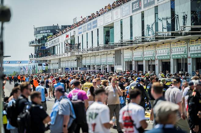 6월 21일 토요일, 결승의 아침이 밝았다. 오전부터 각 팀 피트는 분주했다. 뉘르부르크링은 방문은 이번이 두 번째다. 2019년 10월, 애스턴마틴 밴티지 시승을 위해 처음 찾았다. 발코니로 GP-슈트레케 품은 도린트 호텔이 숙소여서 잔뜩 기대했다. 그런데 정작 주변 도로에서만 시승해 아쉬움 남긴 반쪽짜리 경험이었다. 반면, 이번엔 본진을 휘젓고 다녔다.