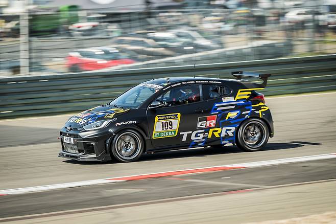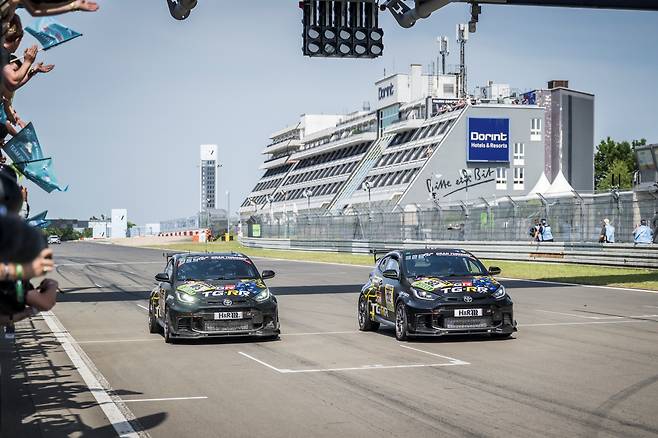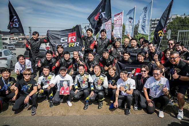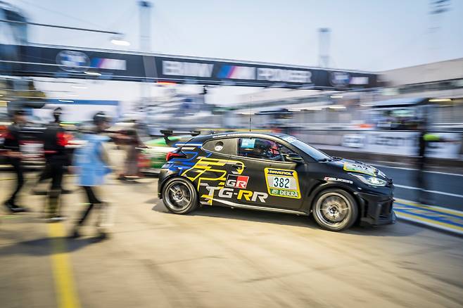 00:00:00. 거꾸로 흐르던 전광판 시계가 조용히 멈췄다. 24시간 대장정의 마침표다. 곧이어 형광 노랑색 만타이 레이싱 포르쉐 911 GT3가 맹렬히 달려와 체커기를 받았다. 이후 밤낮 꼬박 달린 클래스별 머신들이 질풍처럼 휙휙 스쳐 지났다. 이 가운데 나란히 골인한 경주차 두 대가 눈길을 끌었다. ‘토요타 가주 루키 레이싱(TG-RR)’의 GR 야리스였다.