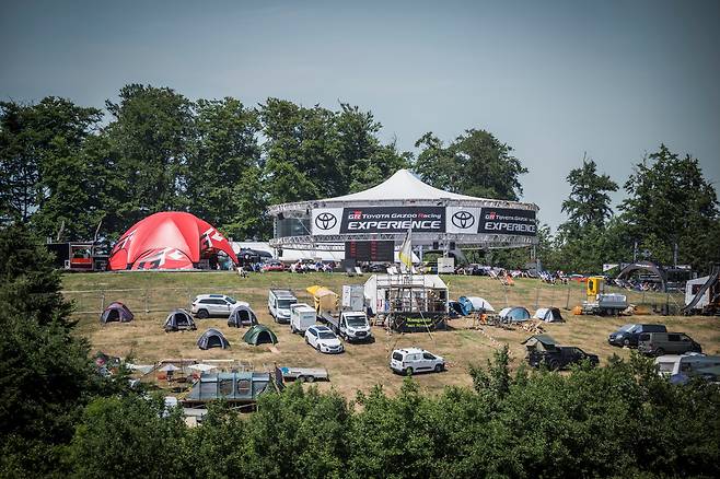우선 트랙 너머 토요타 가주 레이싱팀의 익스피리언스 센터를 찾았다. 입장료 30유로만 내면, 추가 부담 없이 먹고 마시며 즐길 수 있는 브랜드 공간이다. 역대 수프라부터 셀리카 WRC 경주차, 랜드크루저, GR 브랜드 차종도 한 자리에서 둘러볼 수 있다. 대형 화면엔 생중계를 띄웠다. 가판에서는 카레부터 바비큐 등 다양한 음식과 음료를 제공했다.