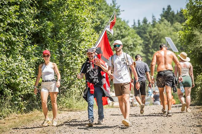 코스 옆 잔디밭 상황은 문화충격에 가까웠다. 꽉꽉 들어찬 텐트촌에서는 광란의 맥주 파티가 한창이었다. 각자 저만의 개성을 살린 가설무대를 만들고, 거친 음악을 쾅쾅 틀었다. 응원하는 팀이나 브랜드의 대형 깃발을 내걸었고, 드럼통에 연신 모닥불을 피웠다. 폭죽 쇼도 펼쳤다. 자욱한 연기와 타는 냄새, 불꽃이 어우러져 몽환적인 분위기를 연출했다.