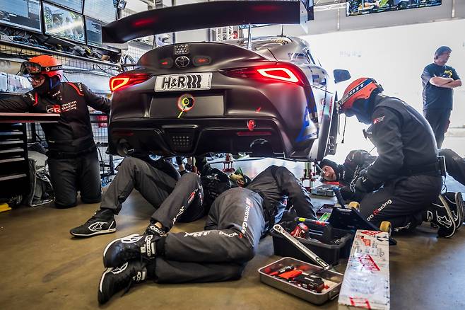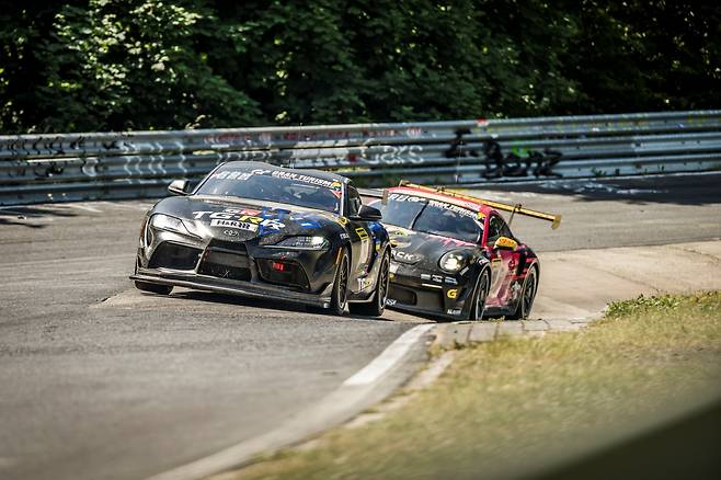 버킷 리스트 한 줄을 지웠다. 지난 6월 20~22일, 토요타 가주 레이싱 초청으로, 독일 라인란트팔츠 주의 뉘르부르크를 찾았다. ‘뉘르부르크링 24시간 내구 레이스’ 취재를 위해서다. 토요타 가주 레이싱의 공식 출전은 2019년 이후 6년 만이다. 이번엔 신인 위주의 루키 레이싱과 한 팀으로 꾸려 GR 야리스와 GR 수프라 GT4 Evo(에보)2를 출격시켰다.