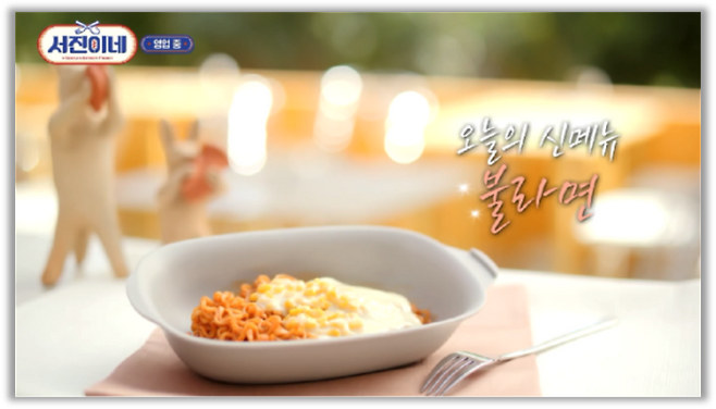 삼양라면은 최근 인기리에 방영중인 tvN 예능 프로그램 ‘서진이네’에 PPL 광고를 진행중이야. 삼양라면과 불닭볶음면을 활용한 라면 메뉴가 현지 식당에서 긍정적인 반응을 얻고 있고, 해당 프로그램에서 인턴으로 활약하고 있는 BTS의 뷔가 ‘불짜장 라면(짜짜로니+불닭볶음면)을 맛있게 먹는 모습이 방영되었거든📺