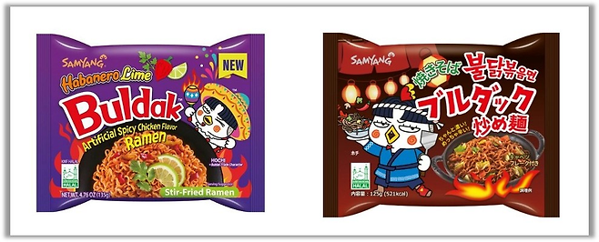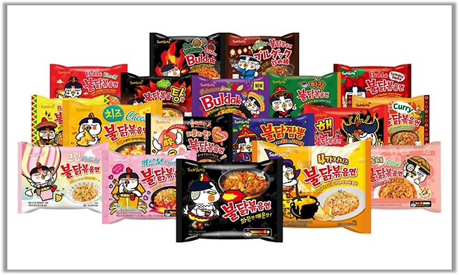 그렇게 매운 맛의 대명사가 된 불닭볶음면은 2016년 유튜브 영국남자 채널을 시작으로 ‘불닭볶음면 먹기 챌린지’가 해외에서 유행으로 번졌어. 이렇게 해외에서 큰 인기를 끌자 삼양라면은 하바네로라임불닭볶음면(미주), 야끼소바불닭볶음면(아시아), 마살라불닭볶음면(중동)과 같은 해당 지역의 문화와 입맛을 고려한 현지 맞춤형 제품을 수출전용으로 선보이며 해외 시장을 공략했지🌍