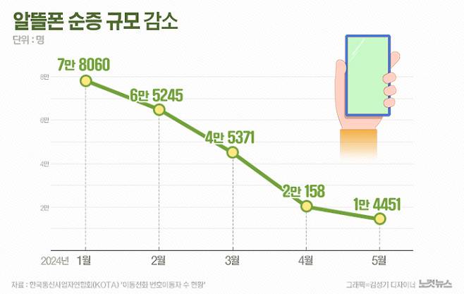 알뜰폰 순증 규모 1월 7만→5월 1만건대…82% 급감
