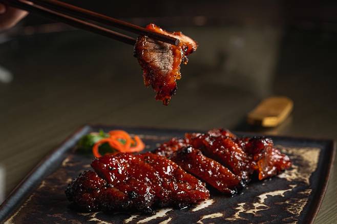 전체적으로 붉다. 마치 1930년대 상해에 온 것 같다. 레스케이프 호텔에서 동양의 멋이 물씬 풍기는 곳. 팔레드 신은 식재료 본연의 맛을 살리는 광동식 요리를 베이스로 홍콩과 대만, 한국적인 요소를 더해 위트 넘치는 요리를 선보인다. 원래는 딤섬이 유명하지만 북경오리 역시 빼놓을 수 없는 메뉴다. 1마리에 16만 원, 3일 전에 예약은 필수다. 기름지고 바삭한 맛이 일품. 껍질 부분은 설탕에 찍어 먹으라고 안내해 준다. 느끼한 맛이 눈 녹듯 사라진다. 나머지 부분은 다른 식재료에 싸서 먹으면 된다. 북경오리를 주문하면 사천식 오리볶음, 북경오리 맑은 야채탕 등 최대 2가지 메뉴를 추가할 수 있다.