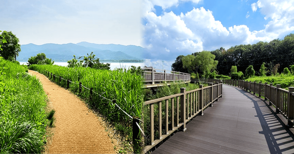 봄바람에 흔들리는 억새와 갈대, 그 사이를 지나는 물새 떼의 움직임은 산책길에 생동감을 더해줍니다. 한적한 분위기 속에 걷다 보면 자신도 모르게 마음의 속도가 느려지며, 말없이 걷는 것만으로도 하루의 피로가 녹아내리는데요. 곳곳에 놓인 데크와 전망대는 호수 위를 한눈에 내려다볼 수 있는 포인트로, 잠시 멈춰 숨을 고르기에 딱 좋습니다.