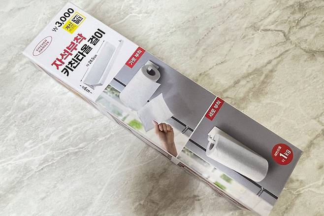 가장 먼저 집에 굴러다니던 키친타월을 걸어주었어요. 보기에도 깔끔하고 키친타월 뜯기도 편합니다.