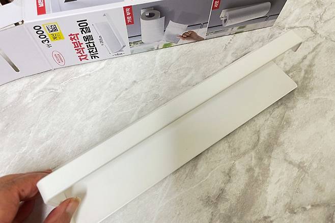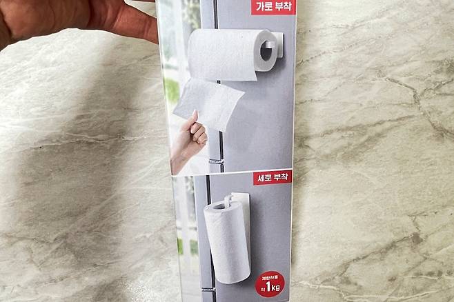 가장 먼저 집에 굴러다니던 키친타월을 걸어주었어요. 보기에도 깔끔하고 키친타월 뜯기도 편합니다.