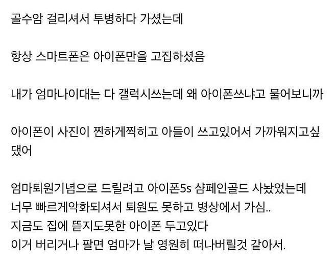 저 사람에겐 아이폰이 평생 엄마의 아이로 남을 수 있는 유일한 매개체겠다..