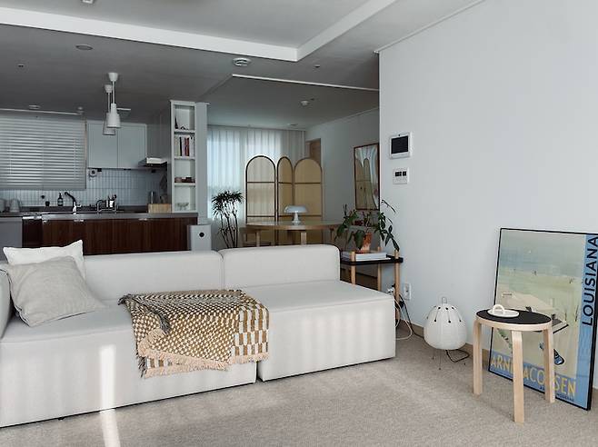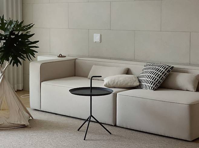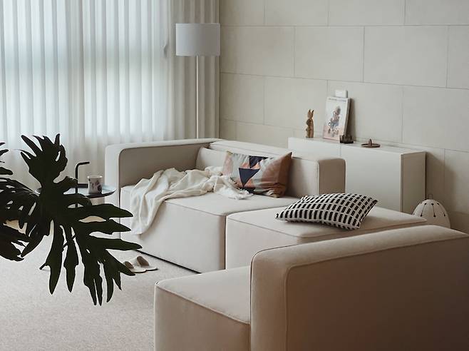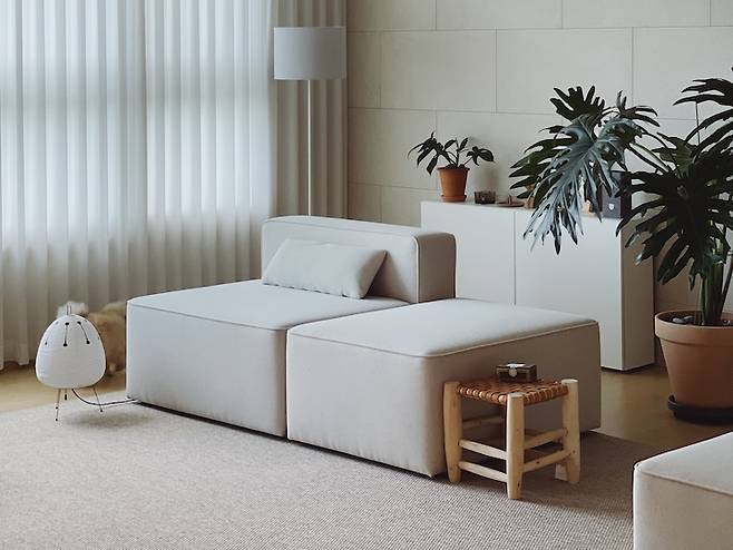 자주 옮기다 보니 움직이기 쉽고 다양하게 활용 가능하도록 모듈 소파를 구입했어요. 거실에서 소파의 위치만 바꿔 배치해도 새로운 느낌을 낼 수 있어 좋은 아이템이에요.