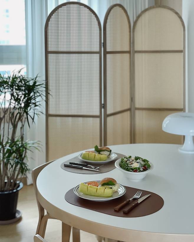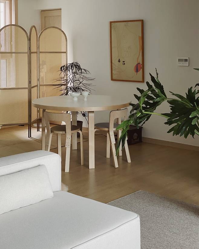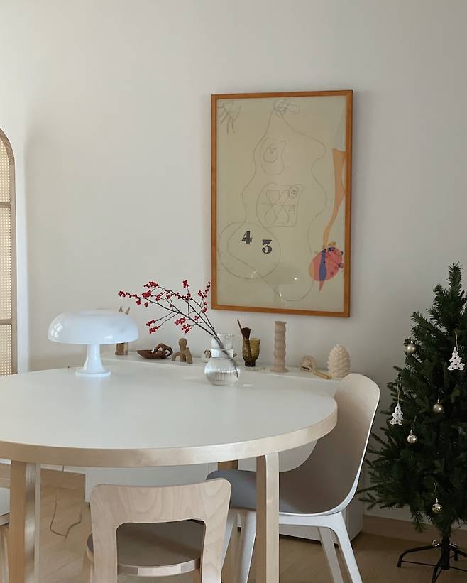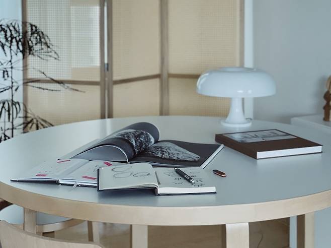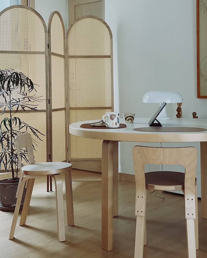식탁을 꽤 오래 고민하다 구매했었는데 정말 만족하며 사용하고 있어요. 원형이고 지름이 125cm로 사이즈가 넉넉해서 좋아요. 핀란드에서 알토하우스를 갔을 때 알바 알토의 가구들이 너무 예쁘다고 생각해서 계속 잊혀지지 않더라고요. 수많은 후보를 제치고 선택된 만큼 오래오래 사용하려고 해요.